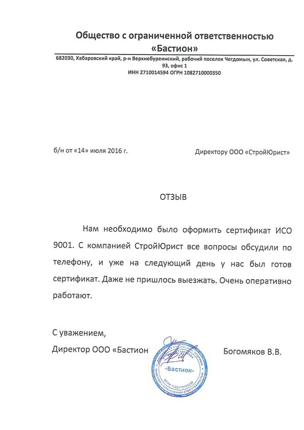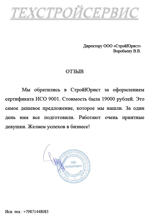 Отзывы клиентов "СтройЮрист" по ISO в Гатчине