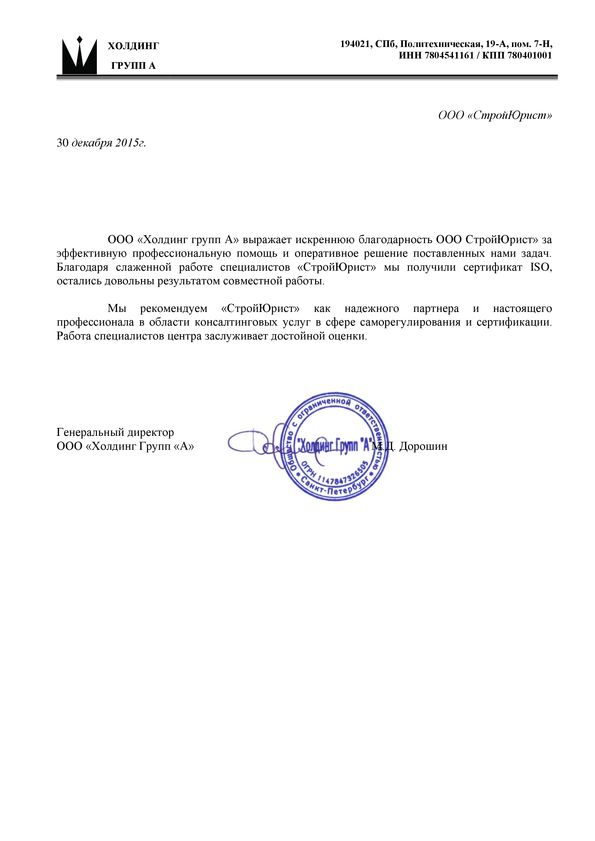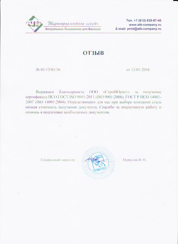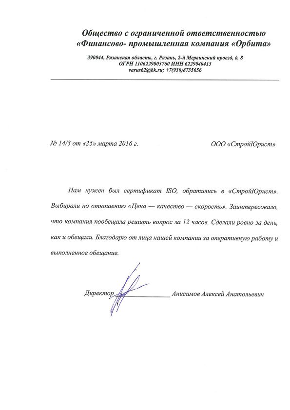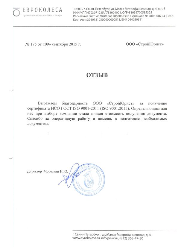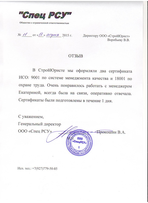 Отзывы клиентов "СтройЮрист" по ISO в Гатчине
