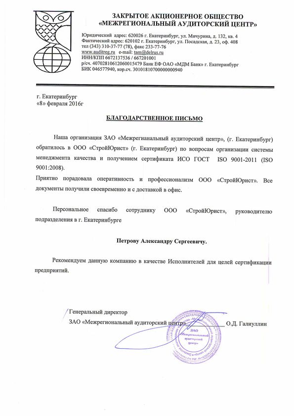 Отзывы клиентов "СтройЮрист" по ISO в Гатчине
