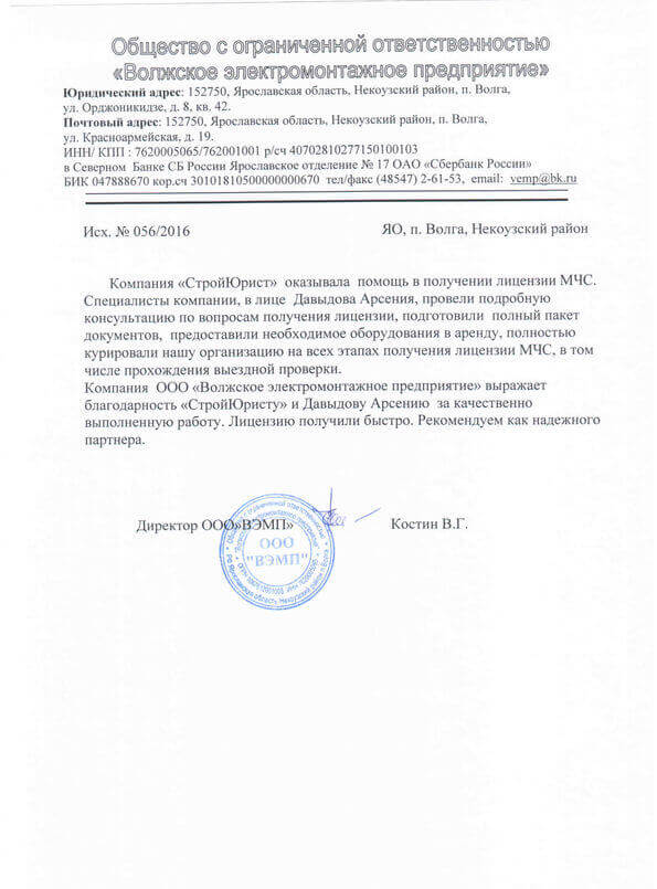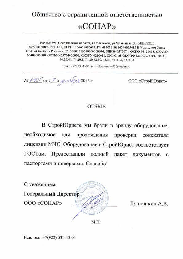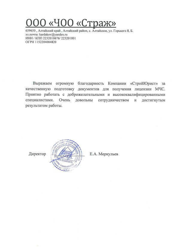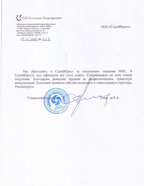 Отзывы клиентов "СтройЮрист" по лицензированию МЧС в Гатчине