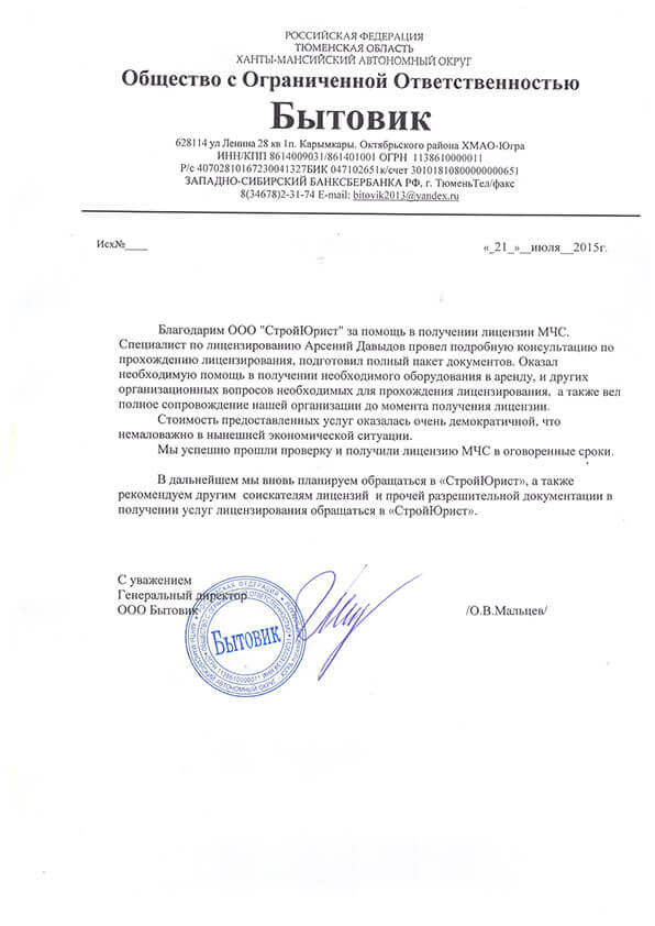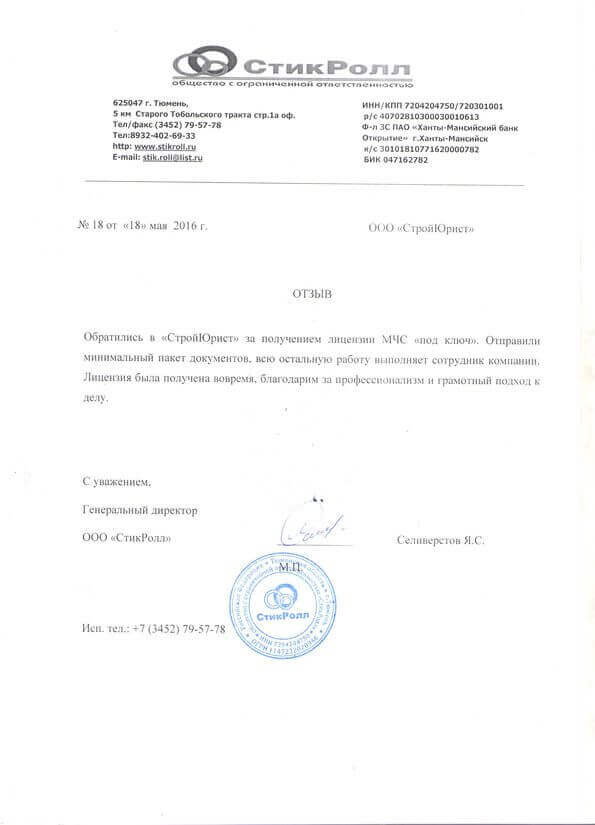 Отзывы клиентов "СтройЮрист" по лицензированию МЧС в Гатчине