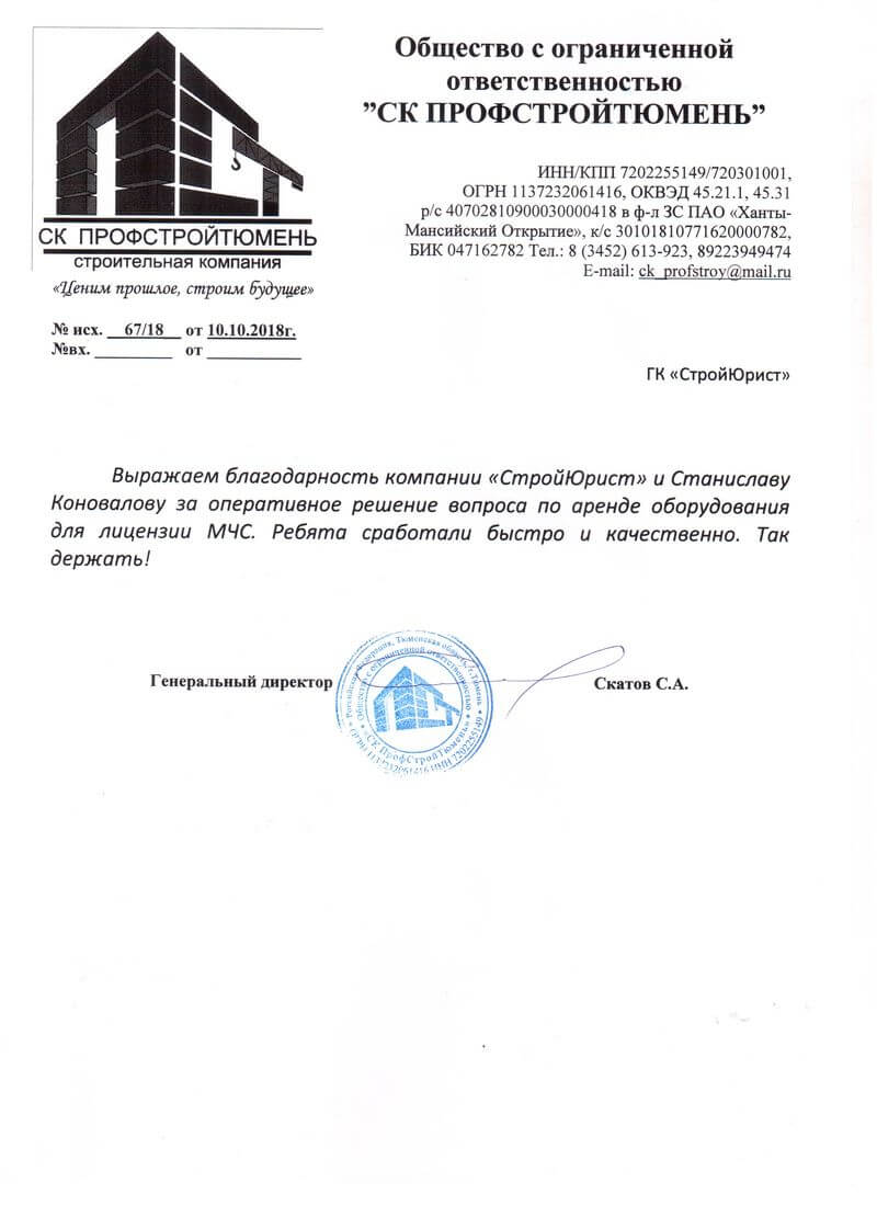 Отзывы клиентов "СтройЮрист" по лицензированию МЧС в Гатчине
