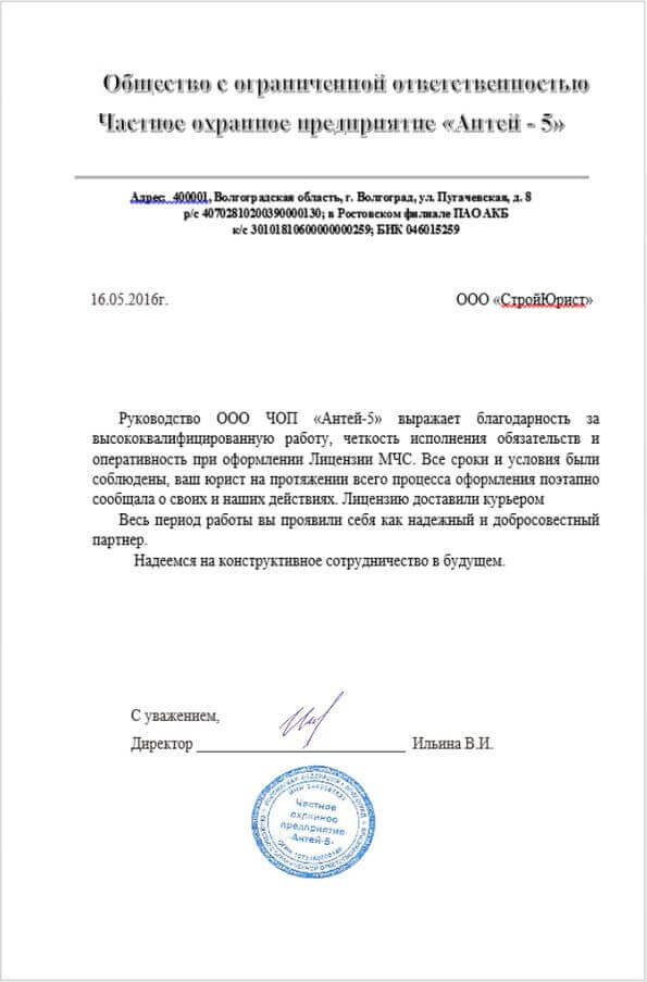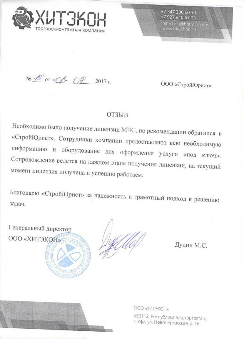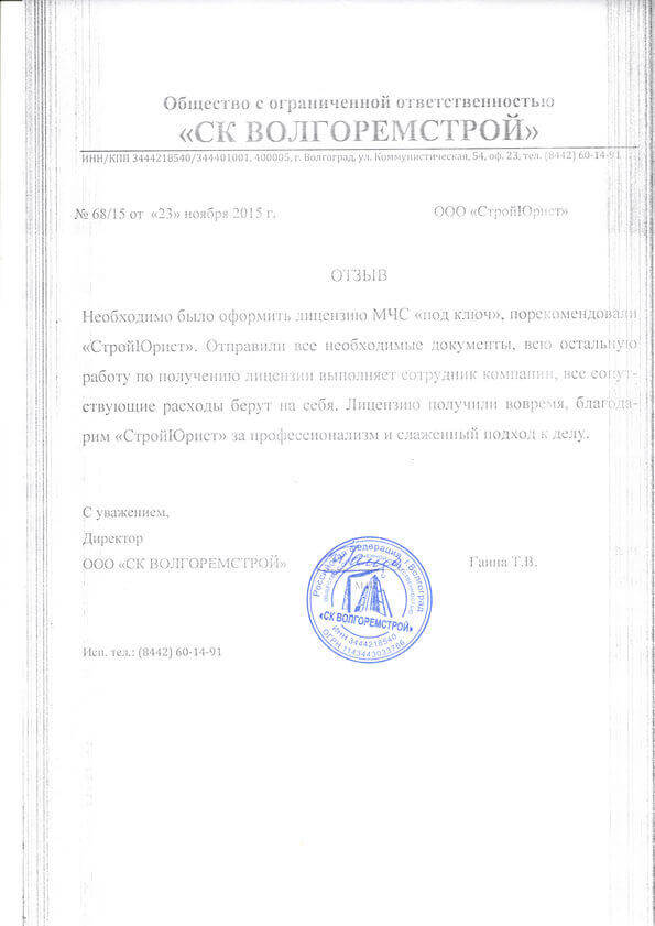 Отзывы клиентов "СтройЮрист" по лицензированию МЧС в Гатчине