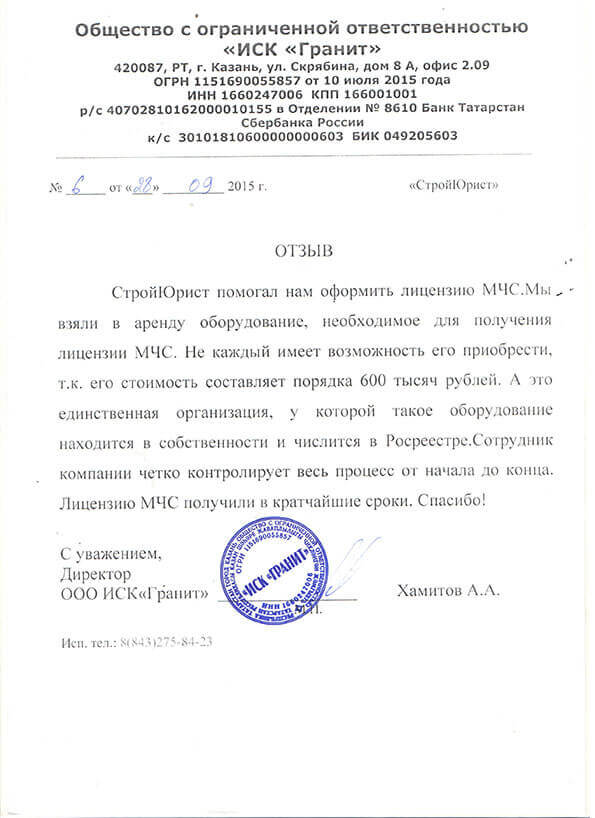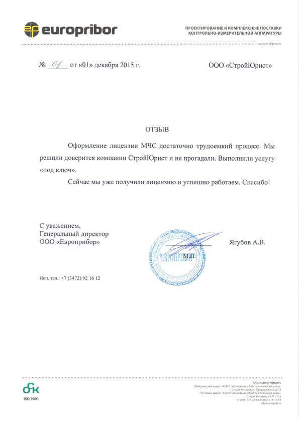 Отзывы клиентов "СтройЮрист" по лицензированию МЧС в Гатчине