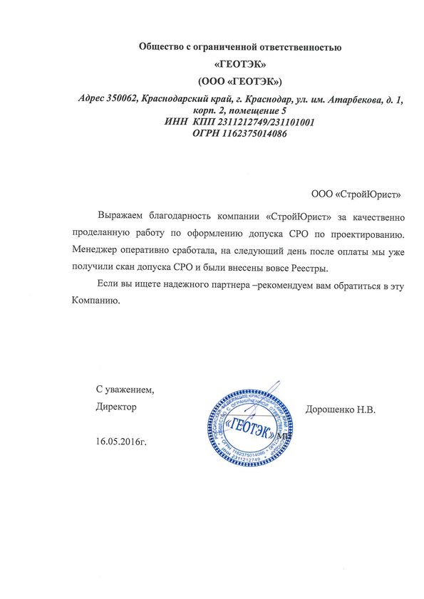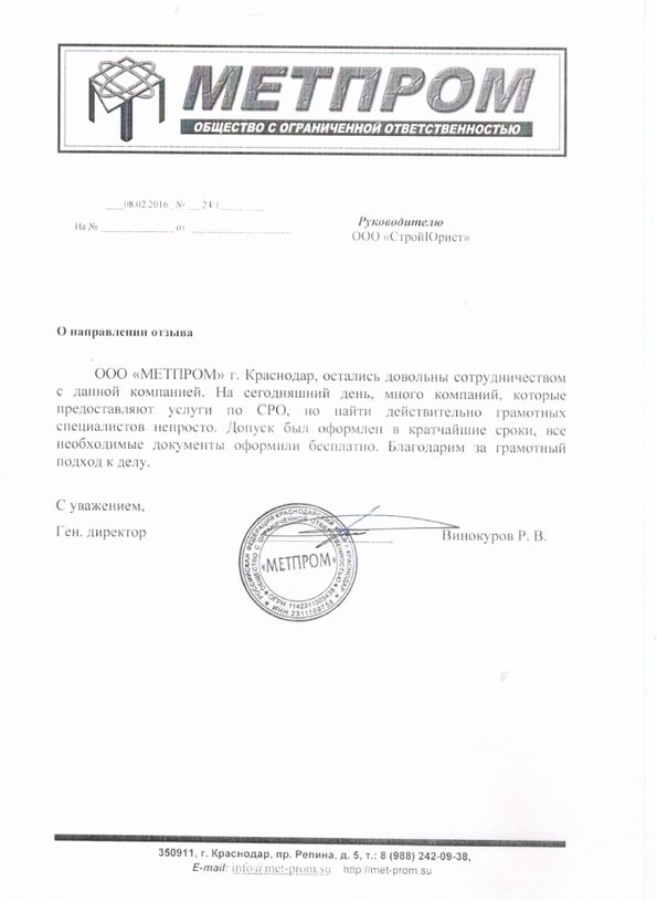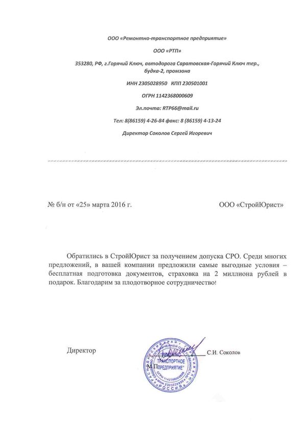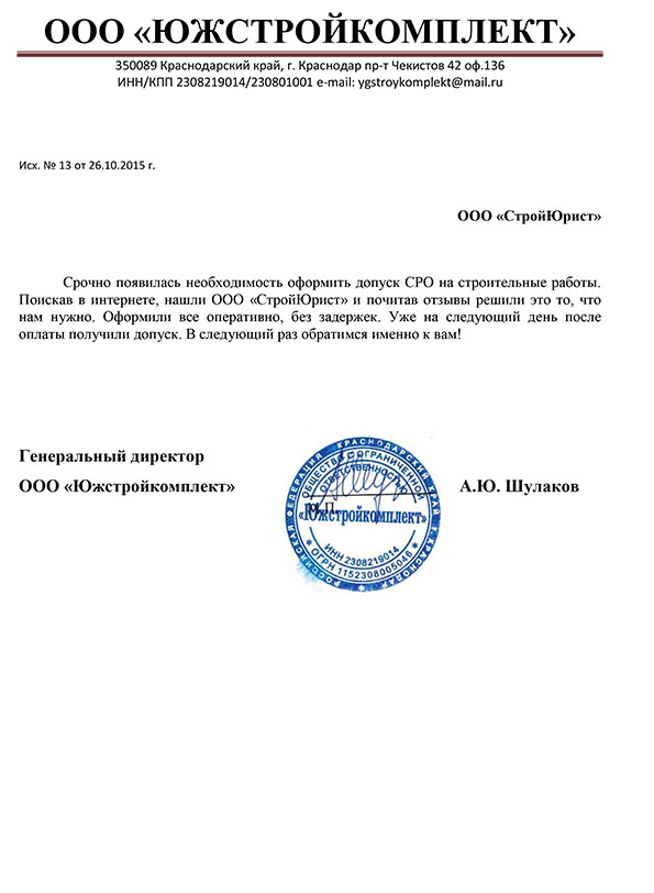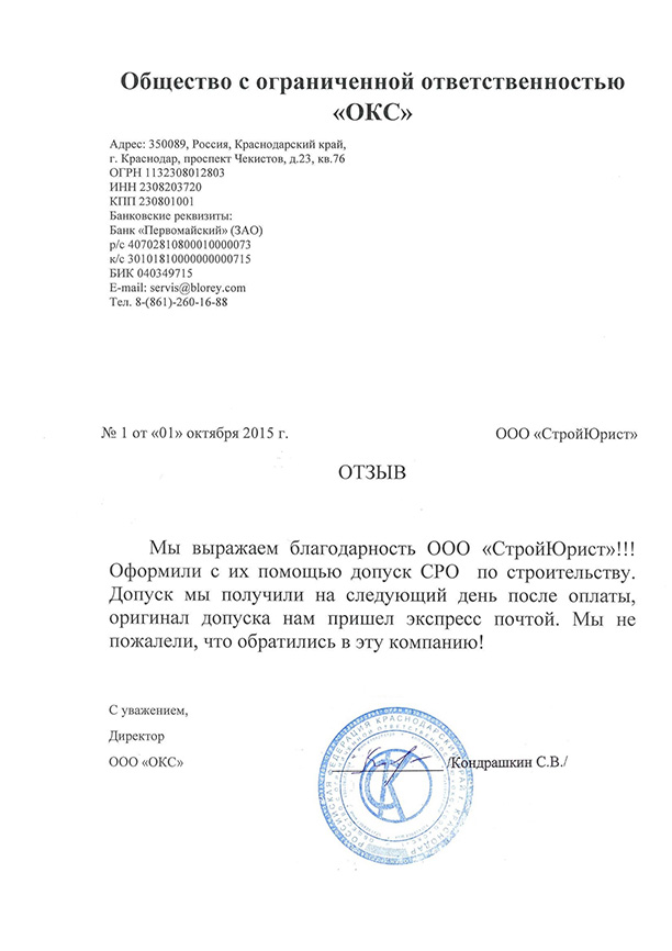 Отзывы клиентов "СтройЮрист" по вступлению в СРО в Гатчине