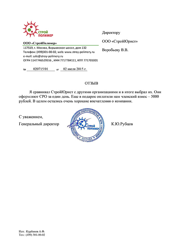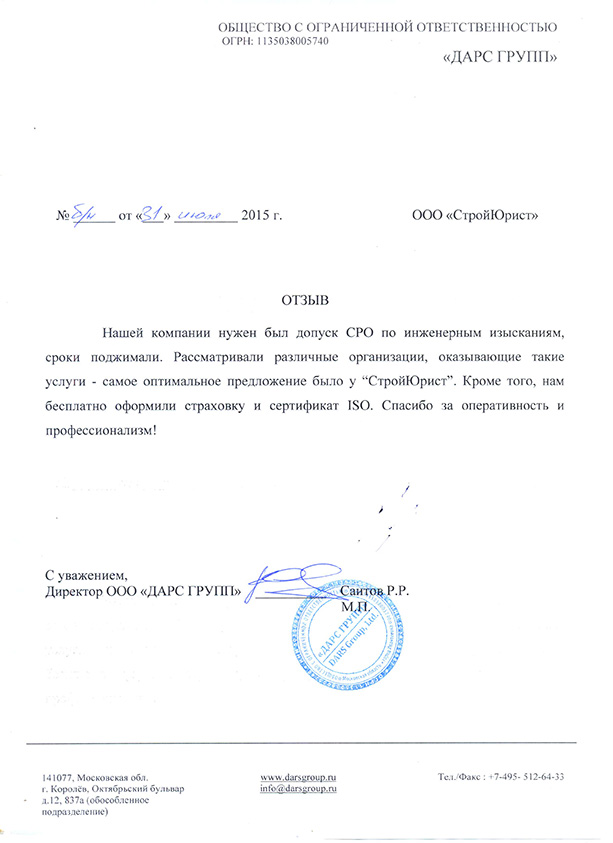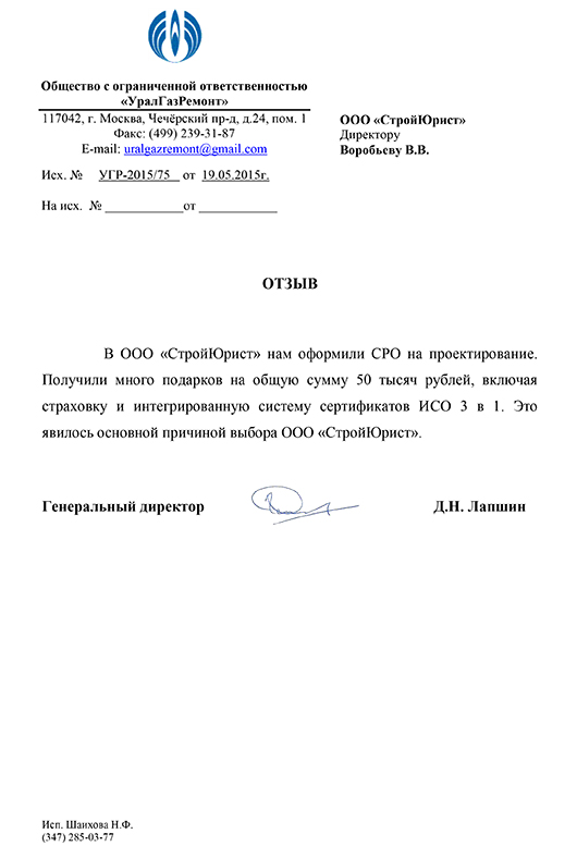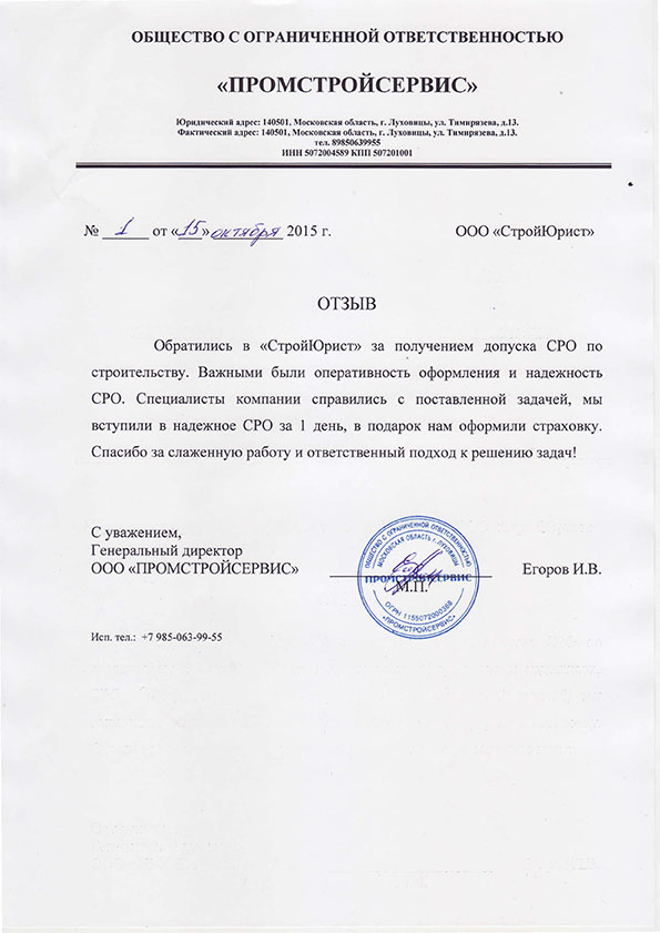 Отзывы клиентов "СтройЮрист" по вступлению в СРО в Гатчине