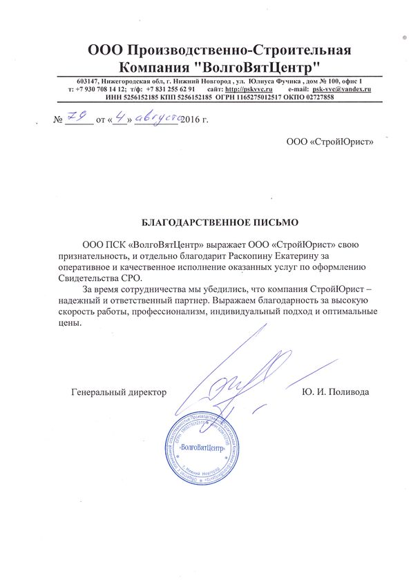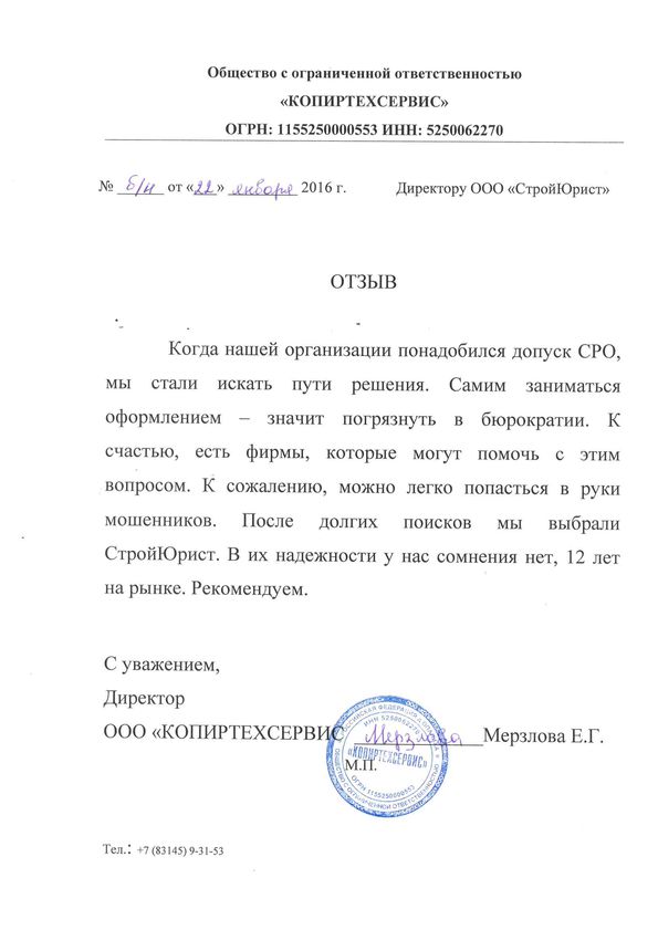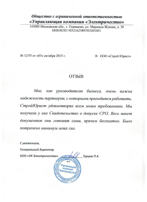 Отзывы клиентов "СтройЮрист" по вступлению в СРО в Гатчине