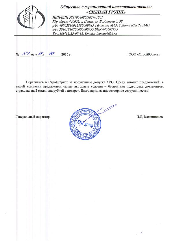Отзывы клиентов "СтройЮрист" по вступлению в СРО в Гатчине