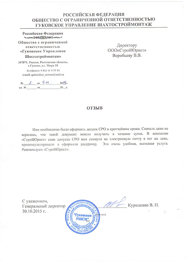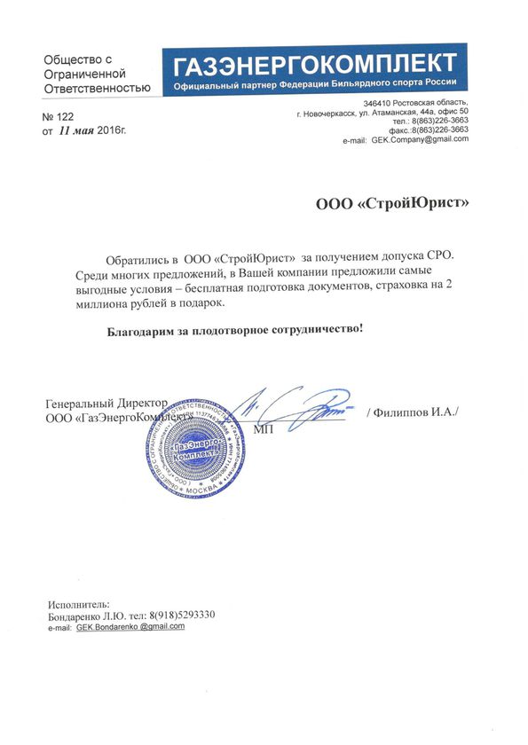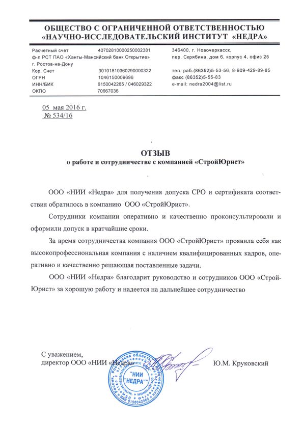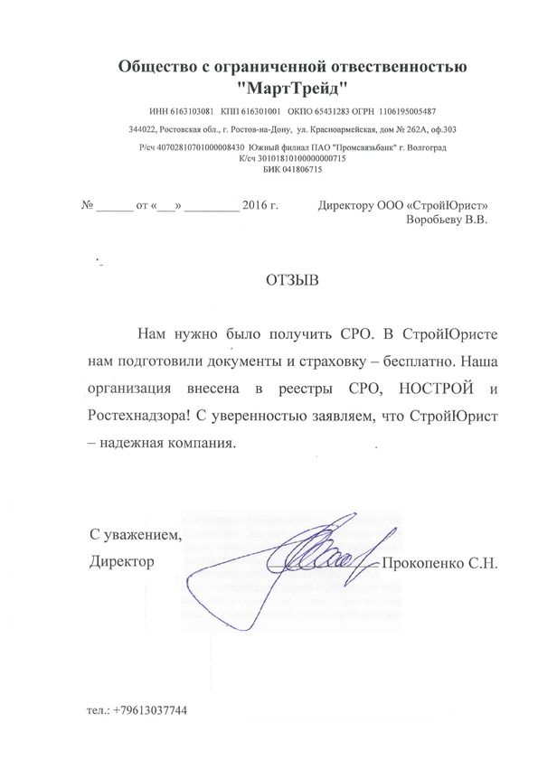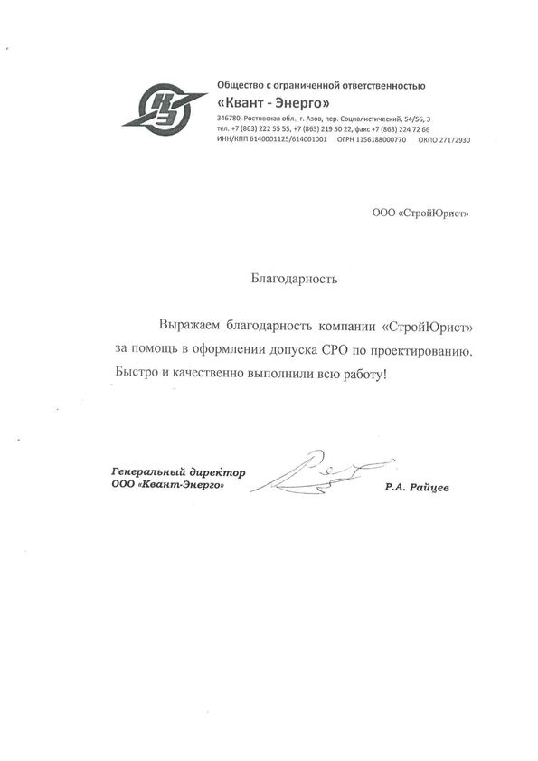 Отзывы клиентов "СтройЮрист" по вступлению в СРО в Гатчине