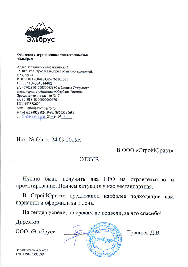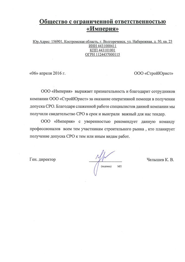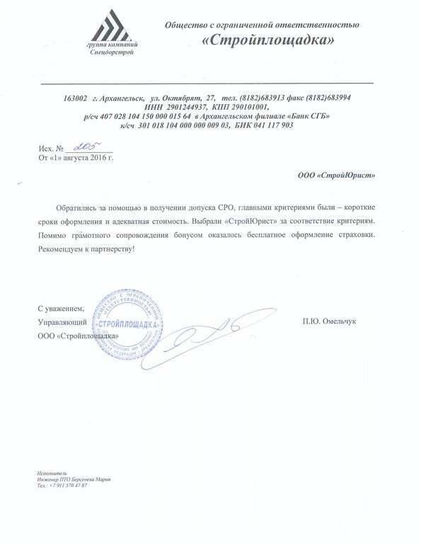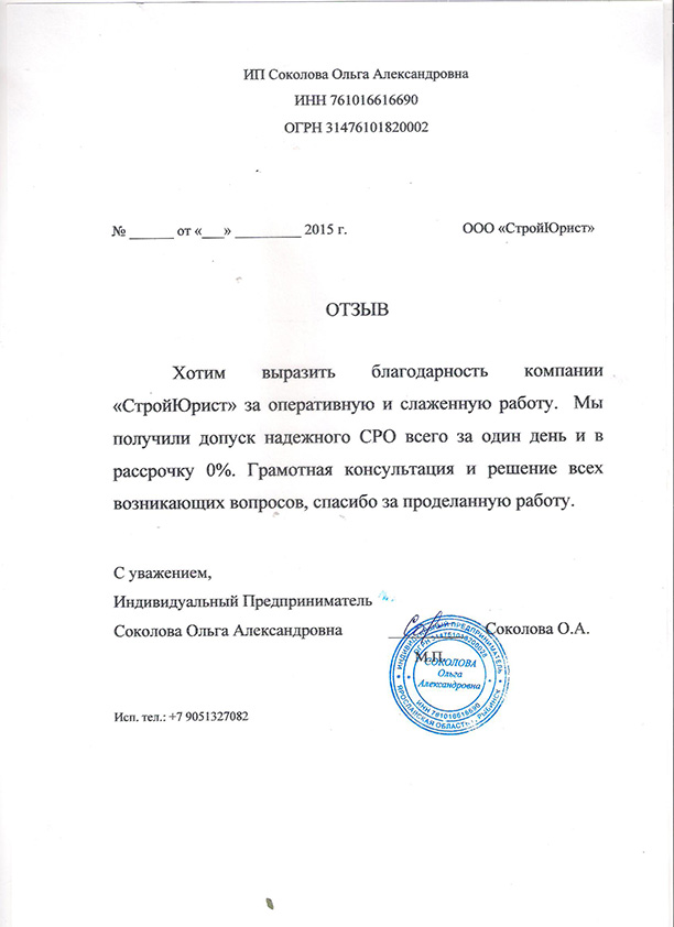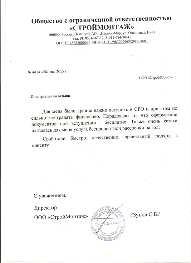 Отзывы клиентов "СтройЮрист" по вступлению в СРО в Гатчине