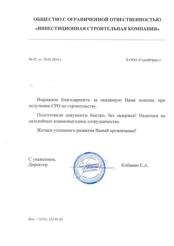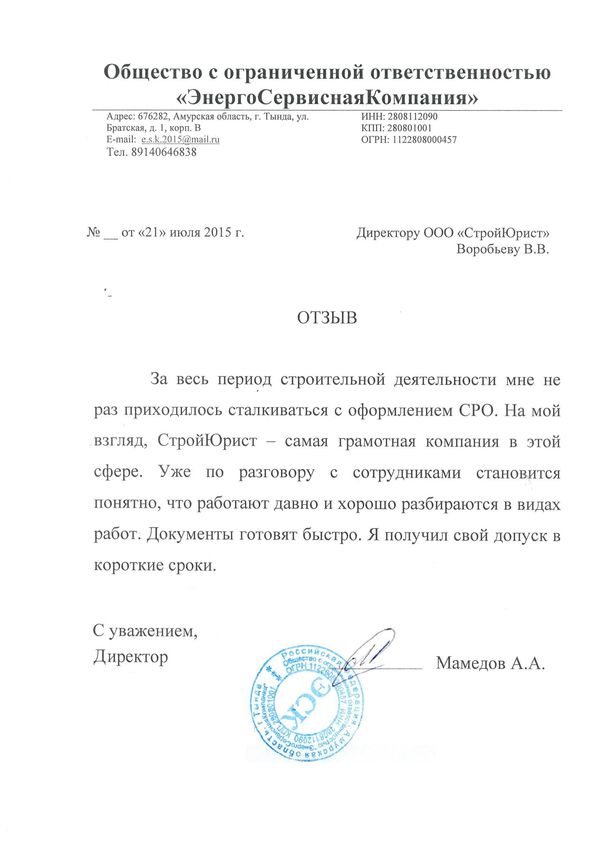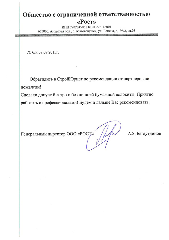 Отзывы клиентов "СтройЮрист" по вступлению в СРО в Гатчине