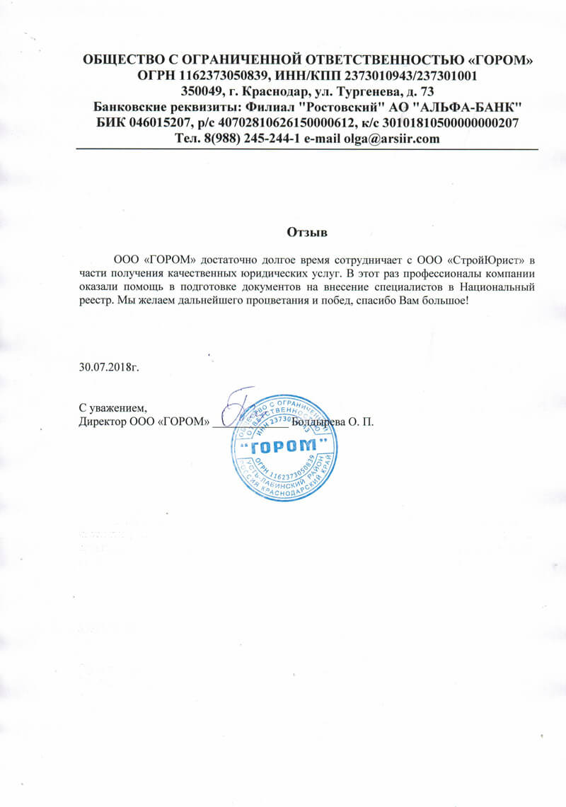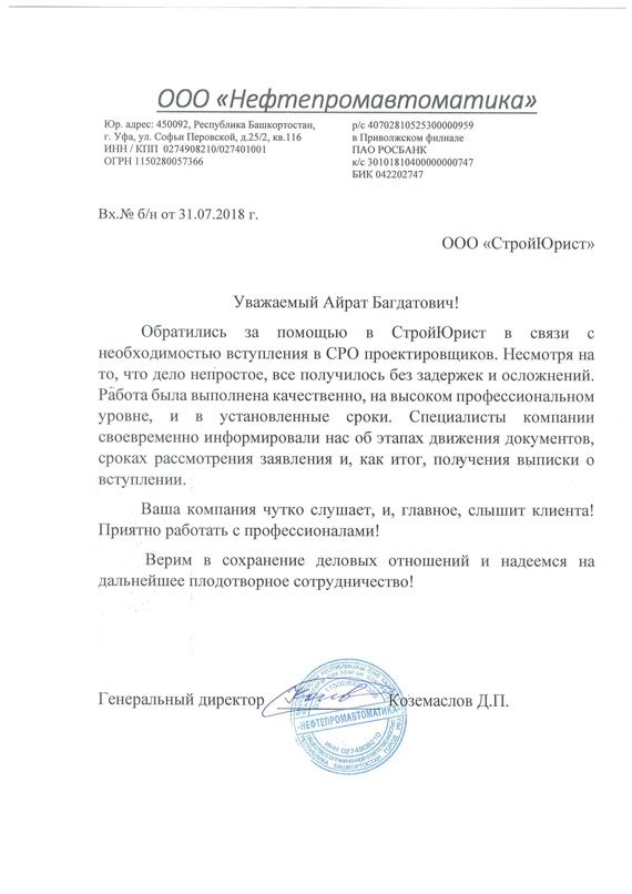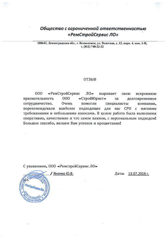Отзывы клиентов "СтройЮрист" по вступлению в СРО в Гатчине