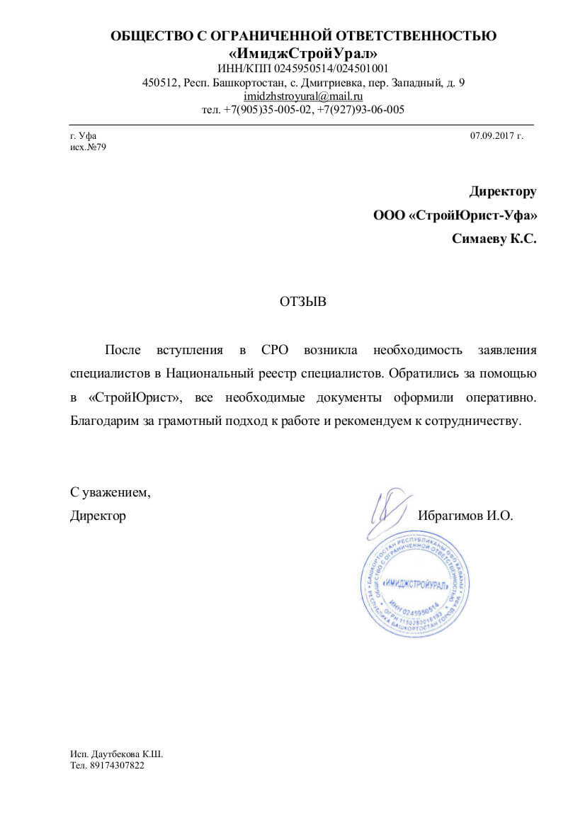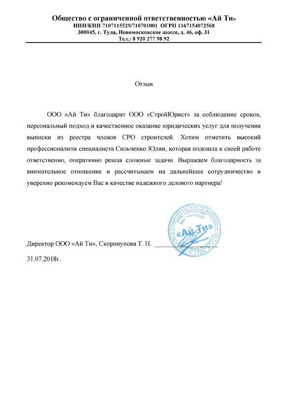 Отзывы клиентов "СтройЮрист" по вступлению в СРО в Гатчине