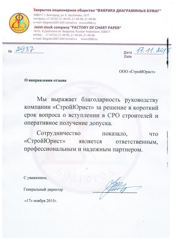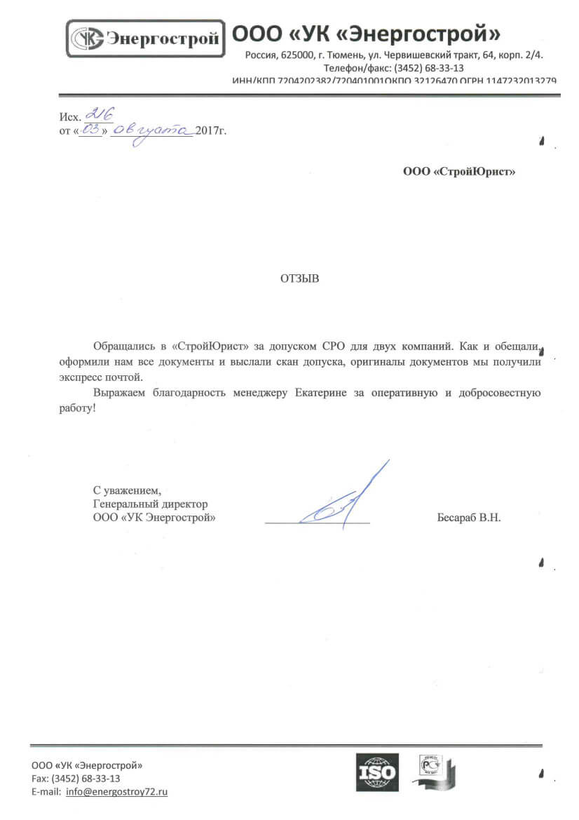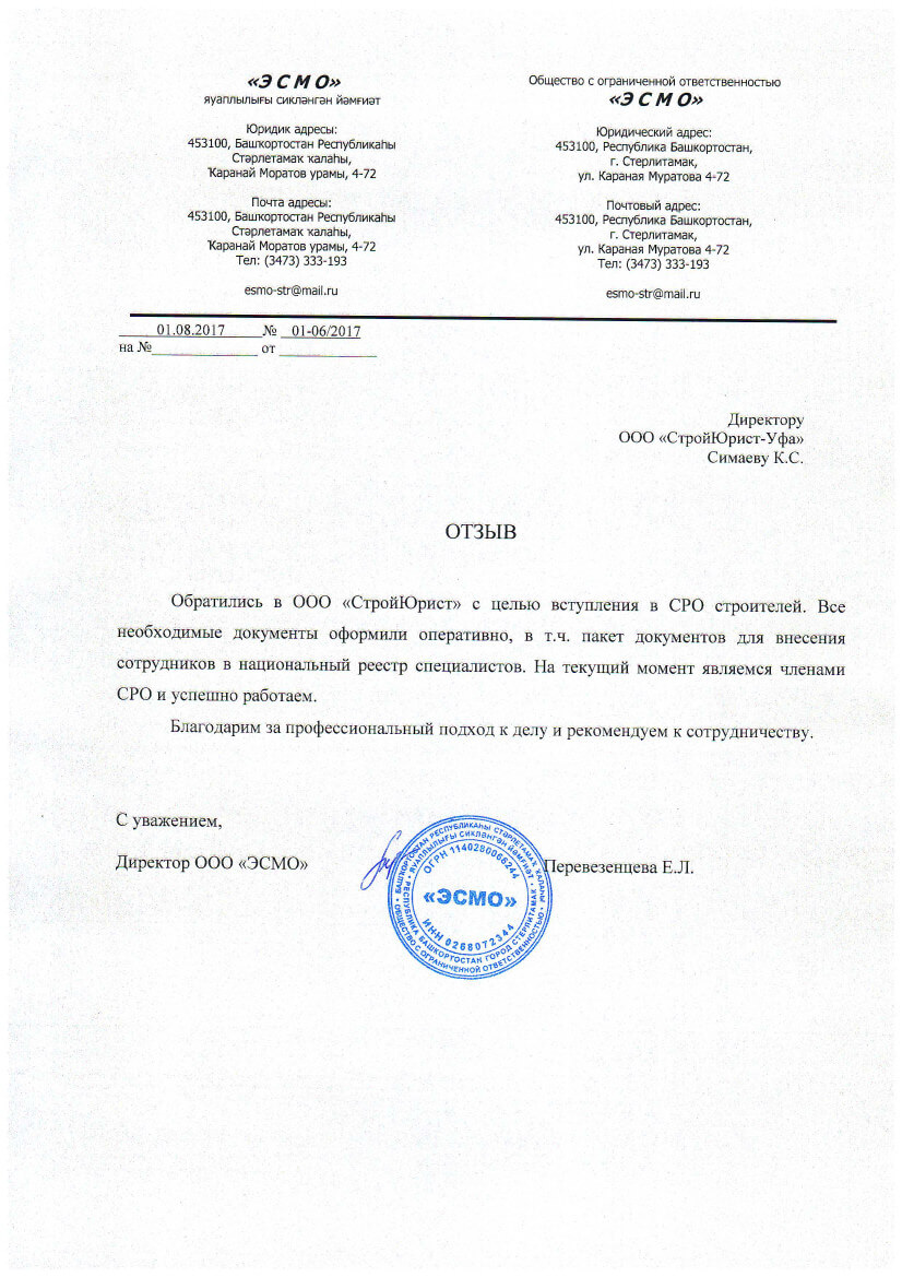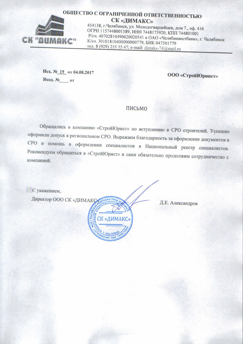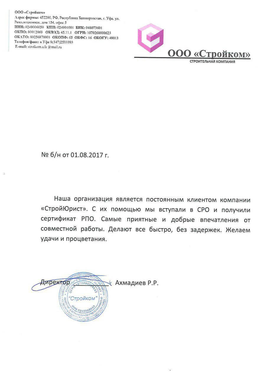 Отзывы клиентов "СтройЮрист" по вступлению в СРО в Гатчине